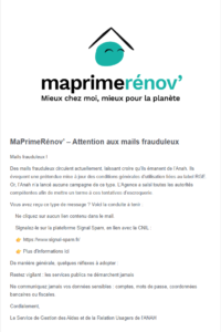 MaPrimeRénov’ – Attention aux mails frauduleux